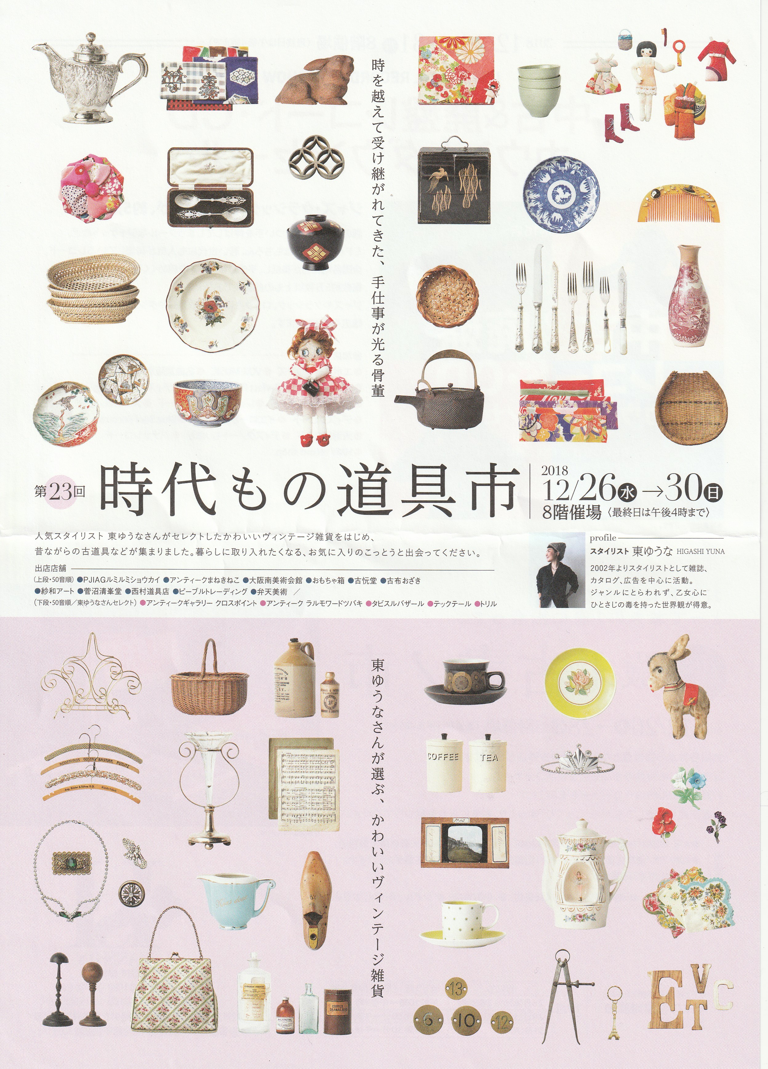 12月26日(水)~12月30日(日) 阪神梅田本店 8階催場 阪神梅田本店の名物催事「時代もの道具市」 スタイリストの東ゆうなさんプロデュースの「可愛…