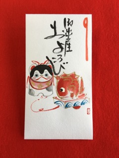手描きのオリジナルおひもせん 紐銭はお宮参りの赤ちゃんが着用する祝い着の紐に 「一生お金に困らないように」と願いを込めて結びつけます。 手描きのぬくもり…