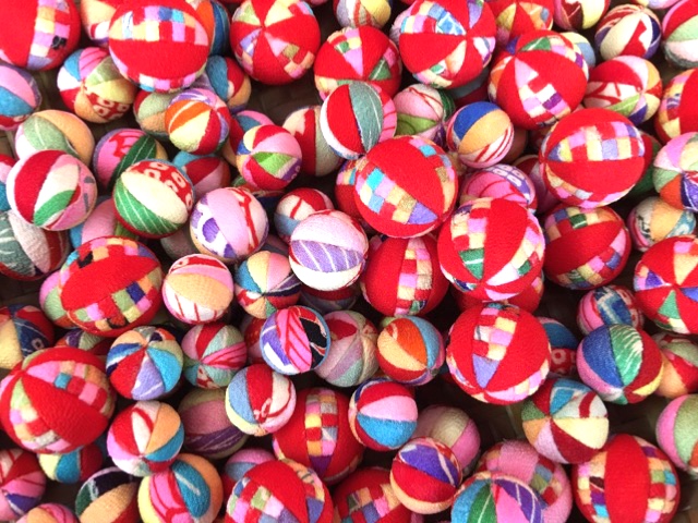 古裂の風船 発泡スチロールに切込みを入れ 縮緬で仕上げた風船 細かな市松部分も柄ではなく 木目込みで仕上げた手間をかけた商品です。 ガラスの器にいれて、お人形と一緒に…
