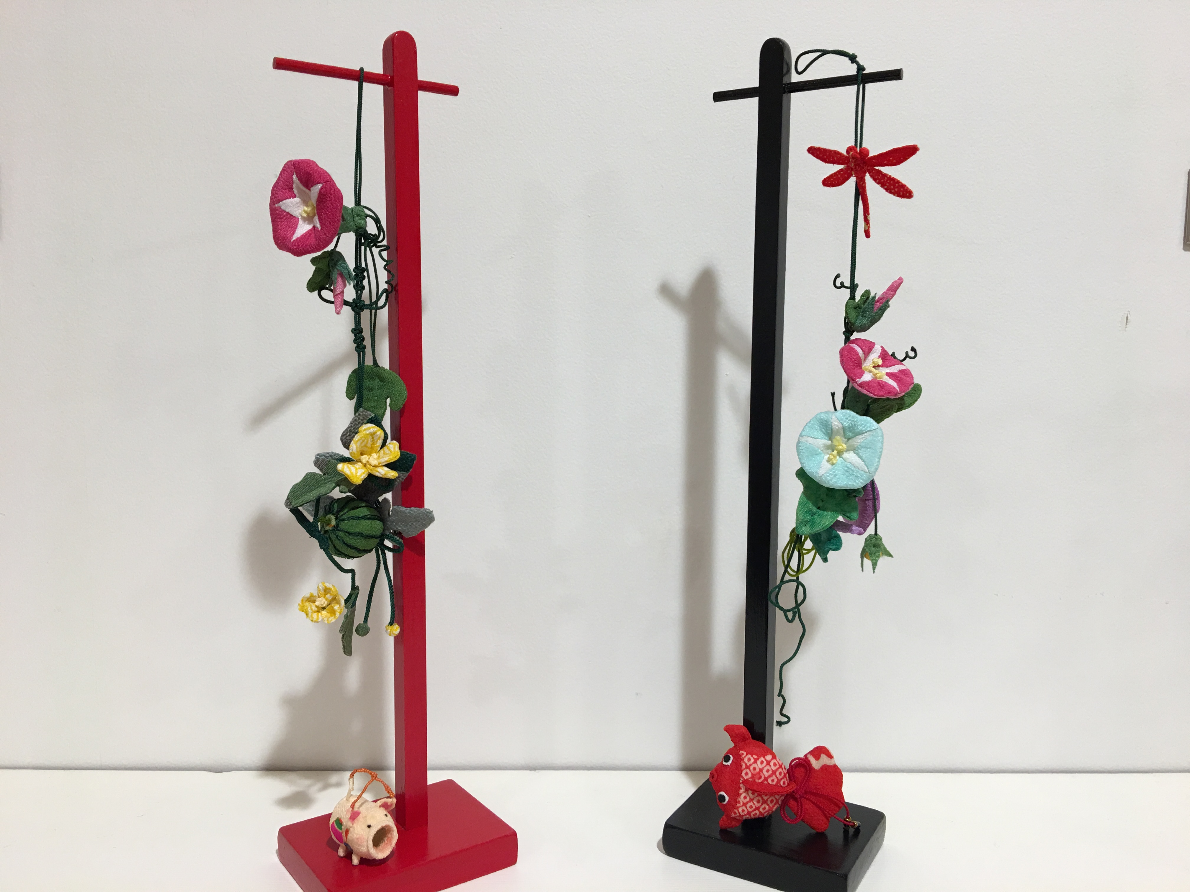 夏の花といえば向日葵や朝顔ですね 本日入荷の商品は夏の吊るし飾り 藤本洋子さんの新作です。 小さな朝顔やすいかやトンボ 夏の風物詩蚊遣り豚に金魚 とてもリアルに仕上げ…