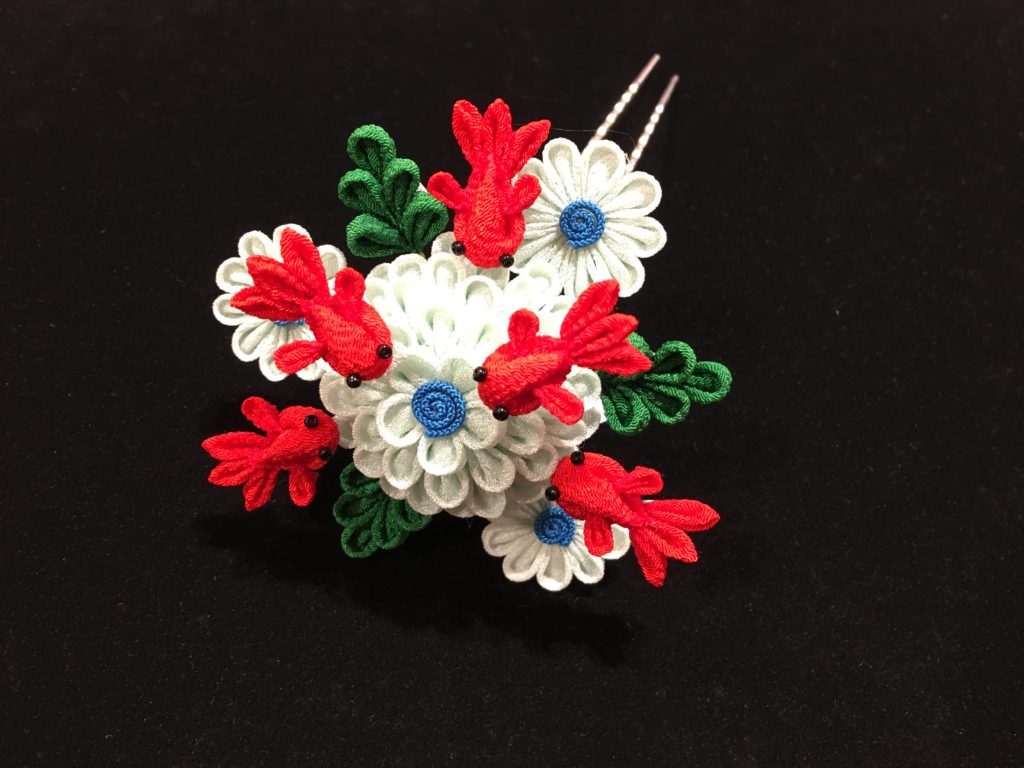 菊と金魚つまみのかんざし